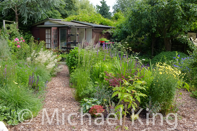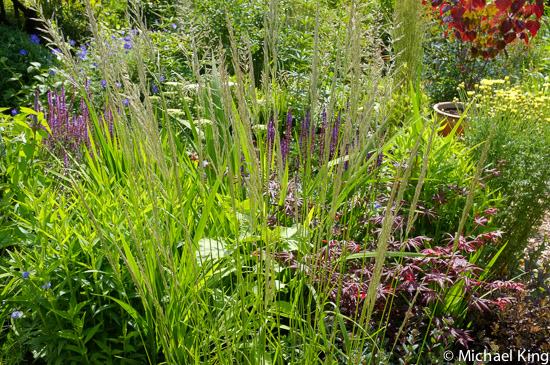 This is one of two long thin borders in which many ideas have been investigated. Together they are 12 meters long and two meters wide. They are different and do not really show a typical perennial meadow in the sense that I now define it, but they do demonstrate one of the overriding principles – repetition.