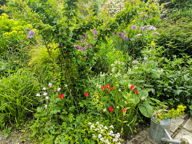 This tulip,Tulipa sprengeri, is the exception to the rule. It will grow and flower well in semi-shade unlike any other and when it does it brings the tulip season to an end. This year it is early in my Amsterdam garden, but often it will not be in flower until June.