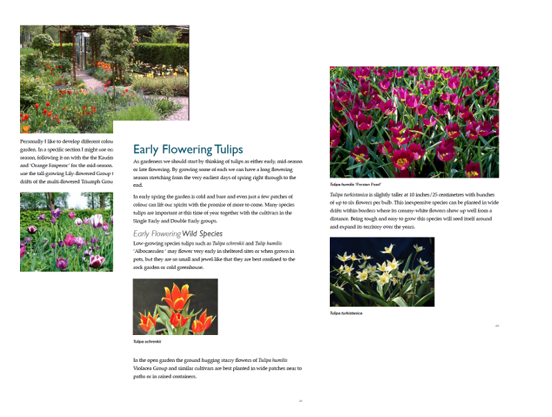 There are early and late flowering tulips and many that fit in-between. I explain which types fall into each category and, accordingly, how best to use them.